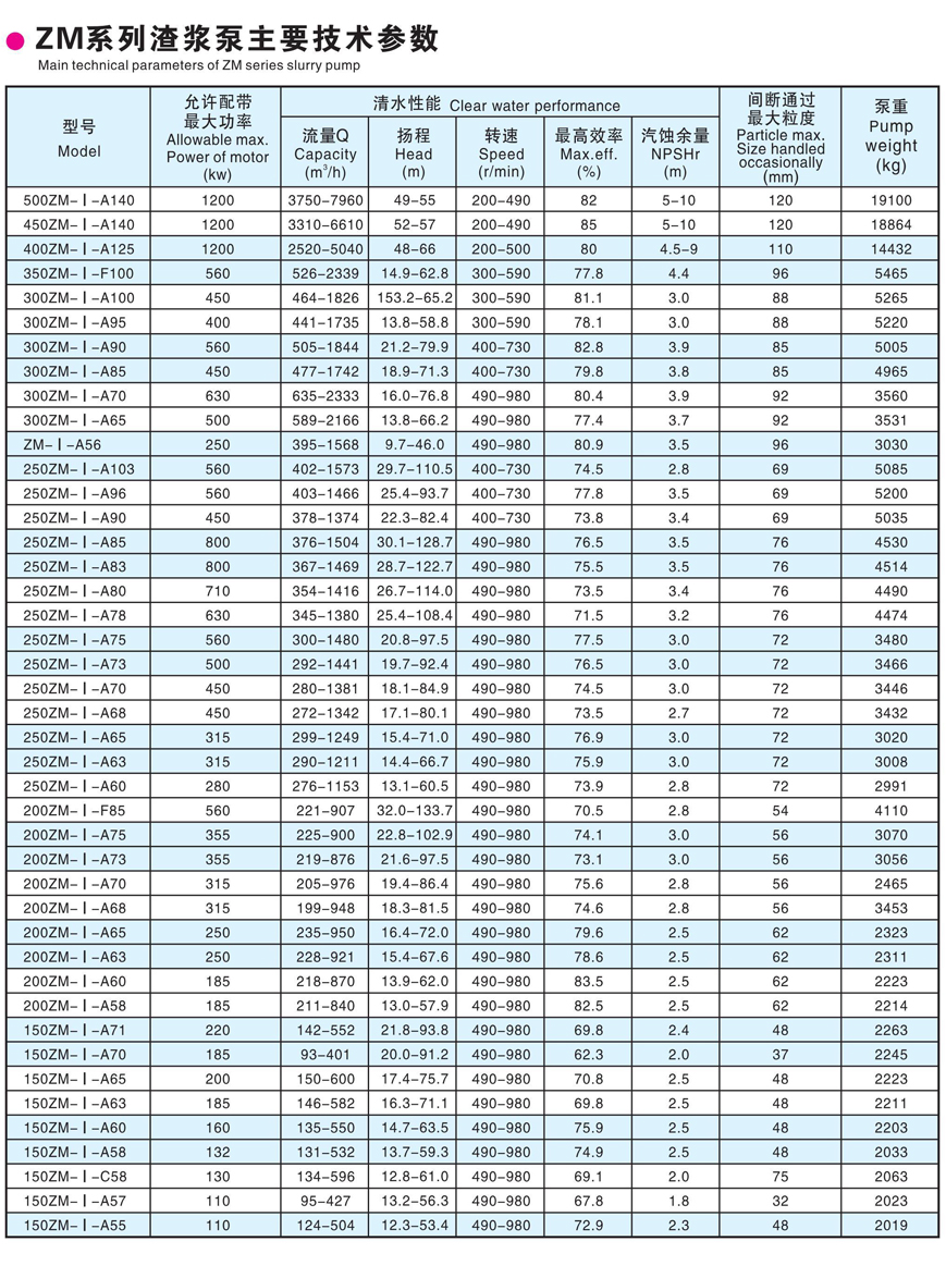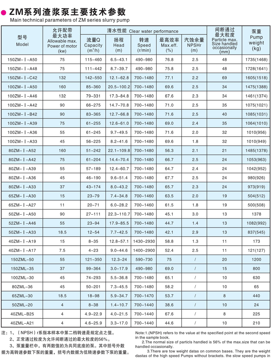 ZM型渣浆开云(中国)系高*效节能、单级、单吸离心式渣浆开云(中国)。按结构型式分为:卧式( ZM型)和立式( ZML型)两种,卧式开云(中国)按出口直径为500mm、 450mm、 400mm、350mm、300mm、250mm、200mm、1 50mm、100mm、80mm、65mm、50mm、40mm等多种规格。立式开云(中国)按出口直径分为150mm、100mm、 80mm、 65mm、 50mm、40mm等多种规格。